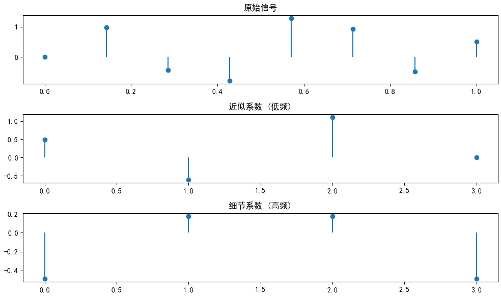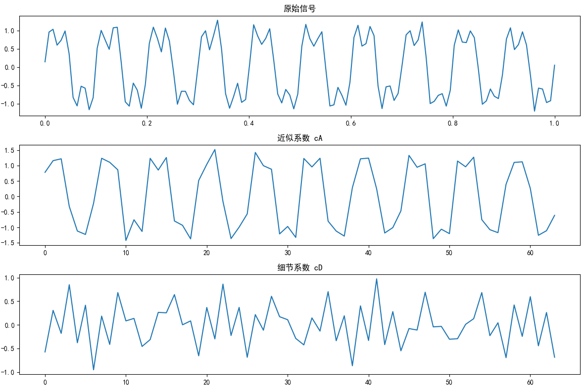 print(f"二级近似: {cA2.shape} <- 一级/2")