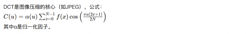 dct_matrix(8),然后Y = T @ X @ T.T。pywt.wavedec2),并可视化所有子带。预期:更多子带,如LL2, LH2等。pywt.threshold处理cD。欢迎在评论区分享你的答案或代码!如果有问题,随时问我。😊