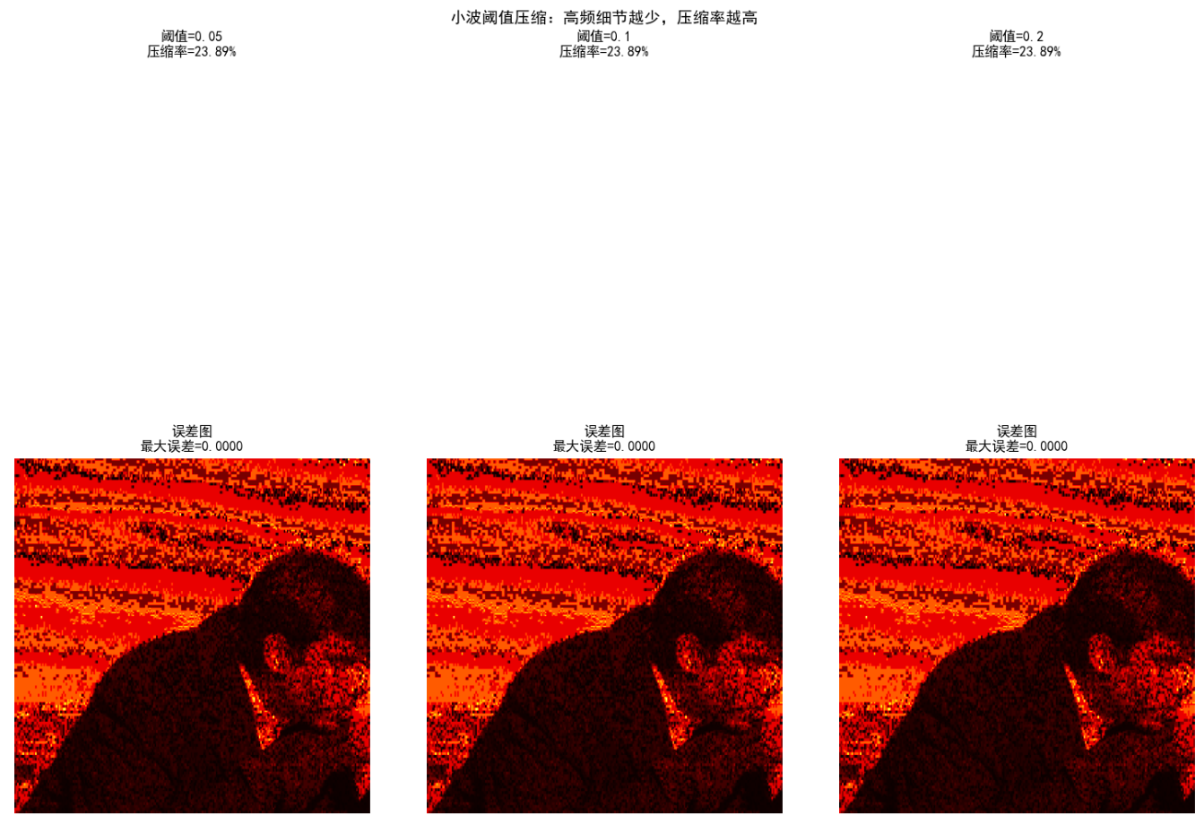 print("小波阈值压缩演示")