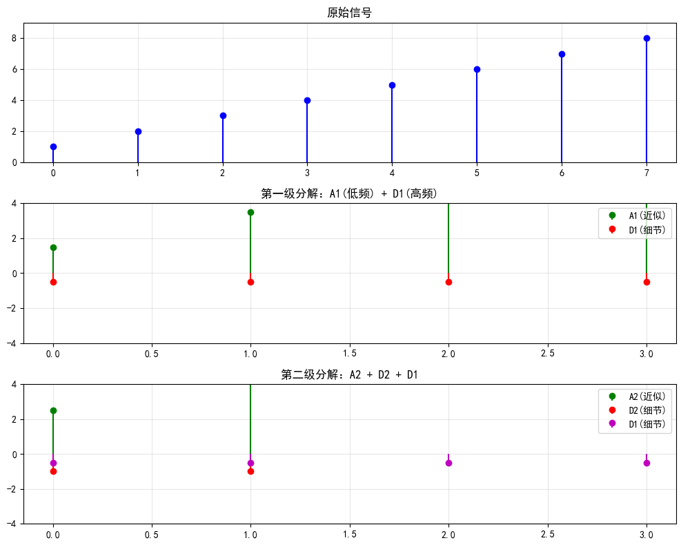print(f"三级近似: {cA3.shape} <- 二级/2")