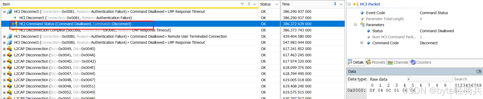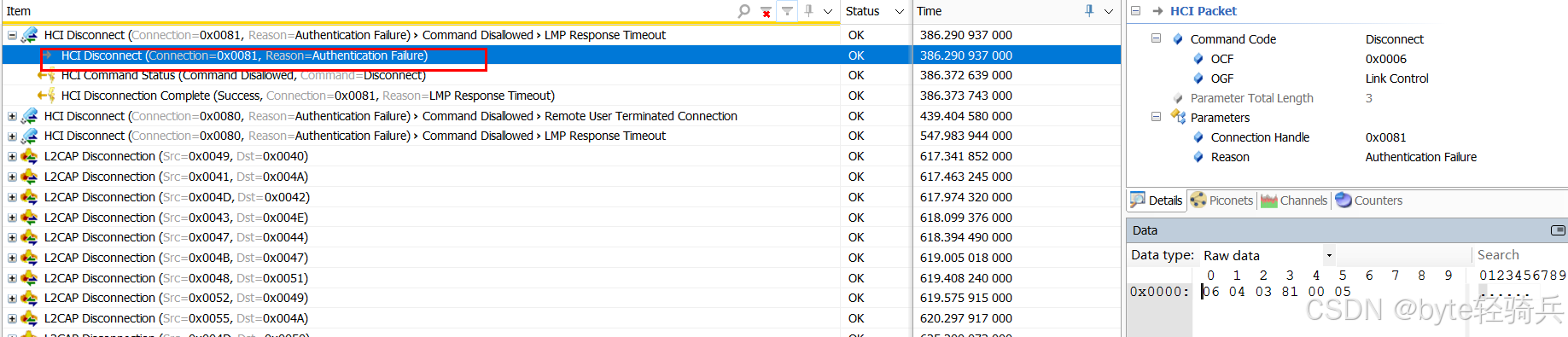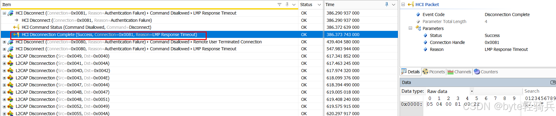 - 关注HCI_Disconnection_Complete事件,检查Reason参数以了解断开连接的具体原因。