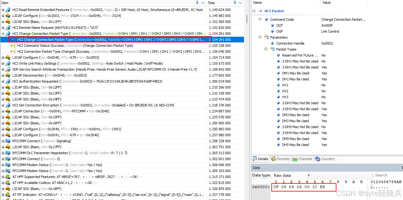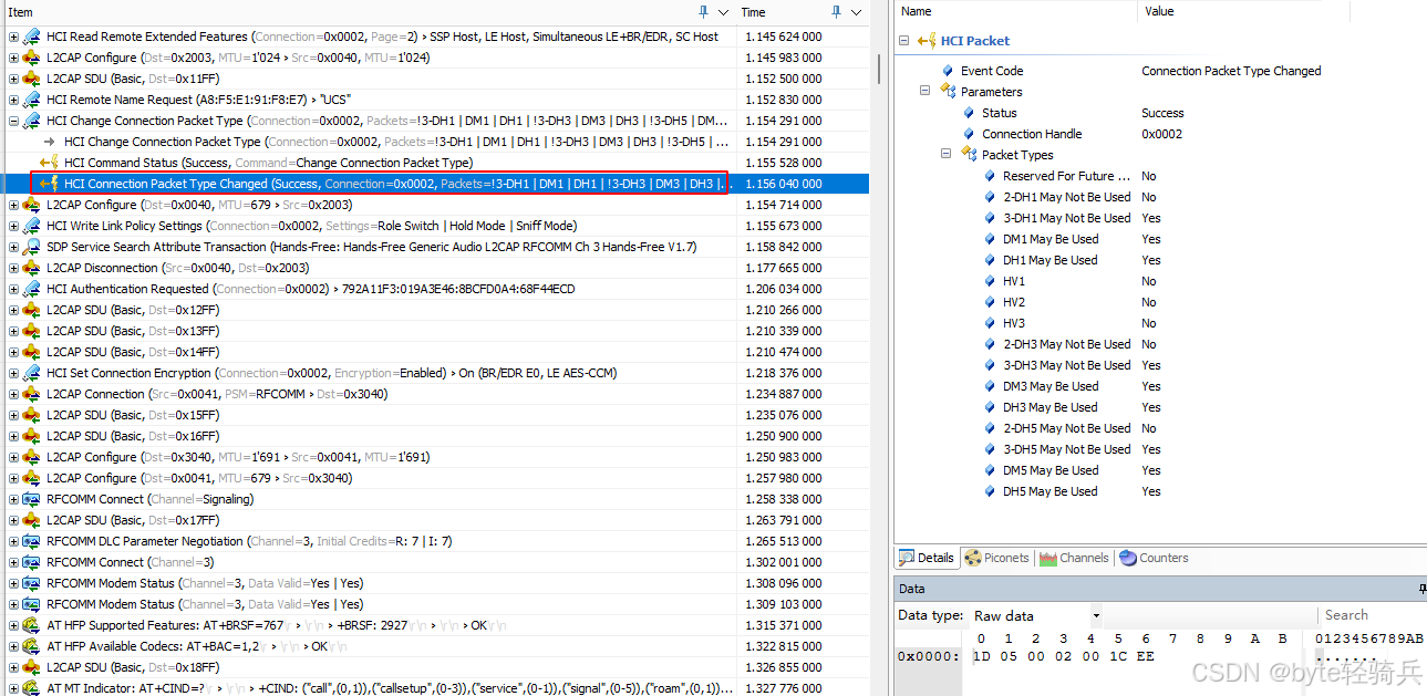 HCI_Connection_Packet_Type_Changed事件通常包含以下信息: