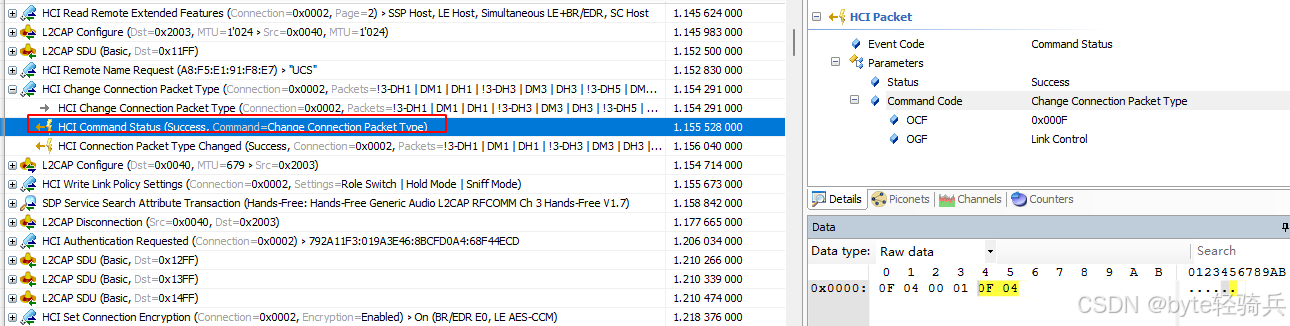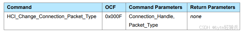 HCI_Change_Connection_Packet_Type 命令是用于改变当前已建立连接所使用的数据包类型的命令。这个命令允许动态修改当前连接,以支持不同类型的用户数据。