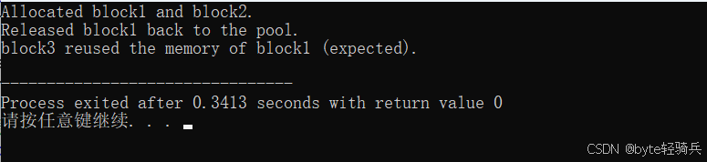 printf("block3 reused the memory of block1 (expected).\n");