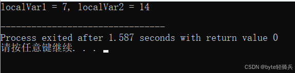 printf("localVar1 = %d, localVar2 = %d\n", localVar1, localVar2);