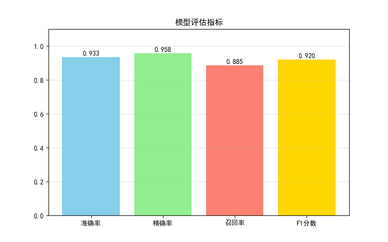 plt.title('模型评估指标', fontsize=12, fontweight='bold')