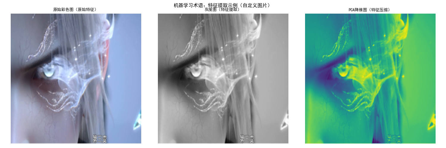 plt.suptitle('机器学习术语:特征提取示例(自定义图片)', fontsize=12, fontweight='bold')