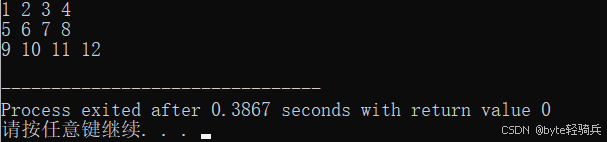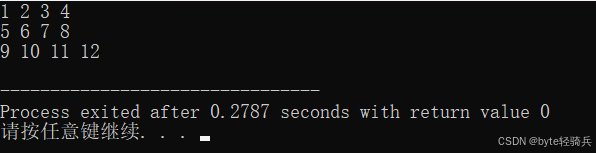 printf("Element at row 1, column 2 (via pointer): %d\n", element); // 输出: 7