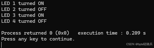 operation(4); // 因为currentState现在是STATE_LED_OFF,所以输出: LED 4 turned OFF