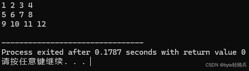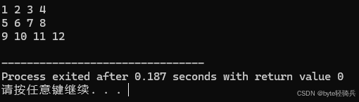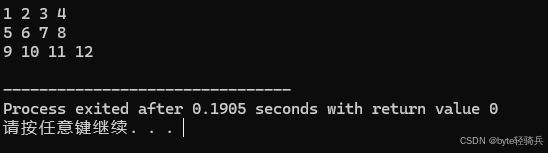 }ptr 是一个指向 int 类型的指针,它指向二维数组 arr 的第一个元素。通过 *(ptr + i * 4 + j),可以访问数组中的每一个元素。注意这里的 4 是因为每行有4个元素。