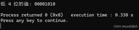④复位操作:reset 函数用于将指定位置的位设置为 0。如果不指定位置,则将所有位都设置为 0。