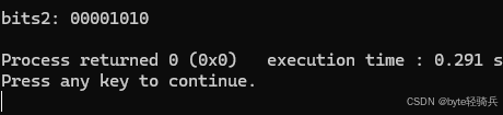 用整数 10 来初始化 bitset 对象 bits2。整数 10 的二进制表示是 00001010,因此 bits2 的值就是这个二进制序列。