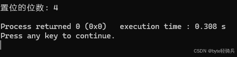 std::cout << "置位的位数: " << bits.count() << std::endl;