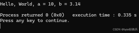 cout << "Hello, World!" << endl;将字符串 “Hello, World!” 输出到控制台,并换行。endl是一个操纵符,用于插入换行符并刷新输出缓冲区。