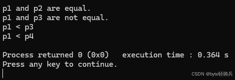 类似地,我们可以重载其他关系操作符。以下是 Point 类中重载 < 操作符的示例: