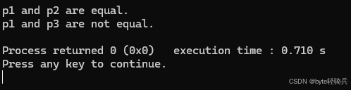 std::cout << "p1 and p3 are not equal." << std::endl;