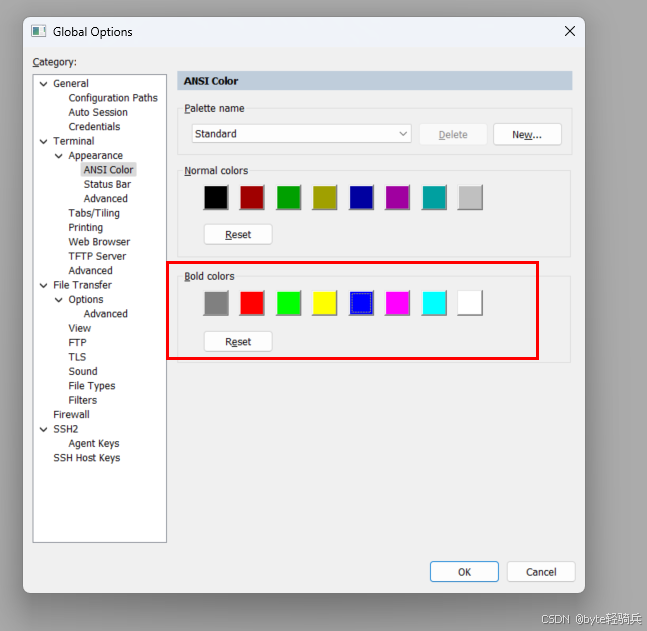 三、基础配置与优化 3.1 界面与编码设置 字体与颜色 进入 Options → Global Options → Terminal → Appearance ,选择“Linux”终端仿真,设置字体为等宽字体(如 Consolas),字号建议 12-1448。