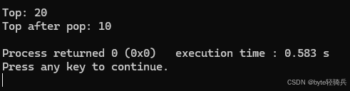 std::cout << "Top after pop: " << intStack.top() << std::endl;