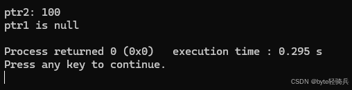 cout << "ptr1 is null" << endl; // 输出此句