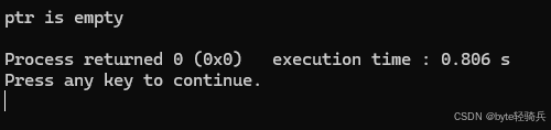 cout << "ptr is empty" << endl; // 输出此句