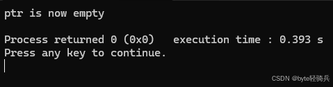 cout << "ptr is now empty" << endl; // 输出此句
