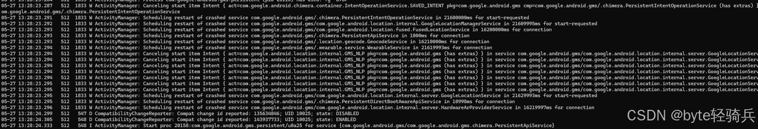 top -n 1 # 实时进程监控在开发应用或者排查设备问题时,查看设备日志是一个非常重要的手段。ADB 提供的 logcat 命令可以帮助我们获取设备的日志信息。