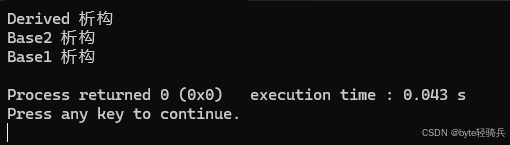 多重继承中,派生类的构造和析构顺序是最容易出错的环节。理解其规则对避免逻辑错误至关重要。