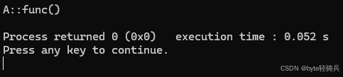 void func() { std::cout << "A::func()" << std::endl; }