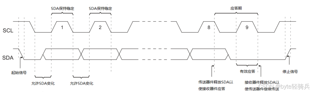 通信的开始和结束由两个特殊信号控制,它们是 I²C 时序的 “定场诗”。