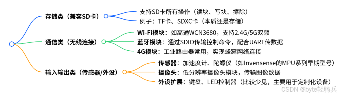 SDIO 设备分三大类,每类对应不同的命令集和应用场景: