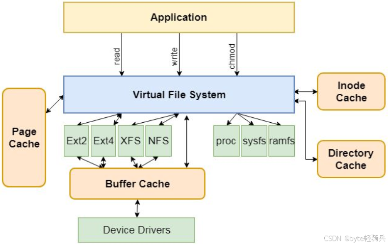 VFS 定义了一套统一的操作接口(如open/read/write),不同文件系统(EXT4/NFS/FAT32)只需实现这些接口。就像不管是 U 盘还是硬盘,你在电脑上都能用同样的复制粘贴操作,背后是 VFS 在做翻译。