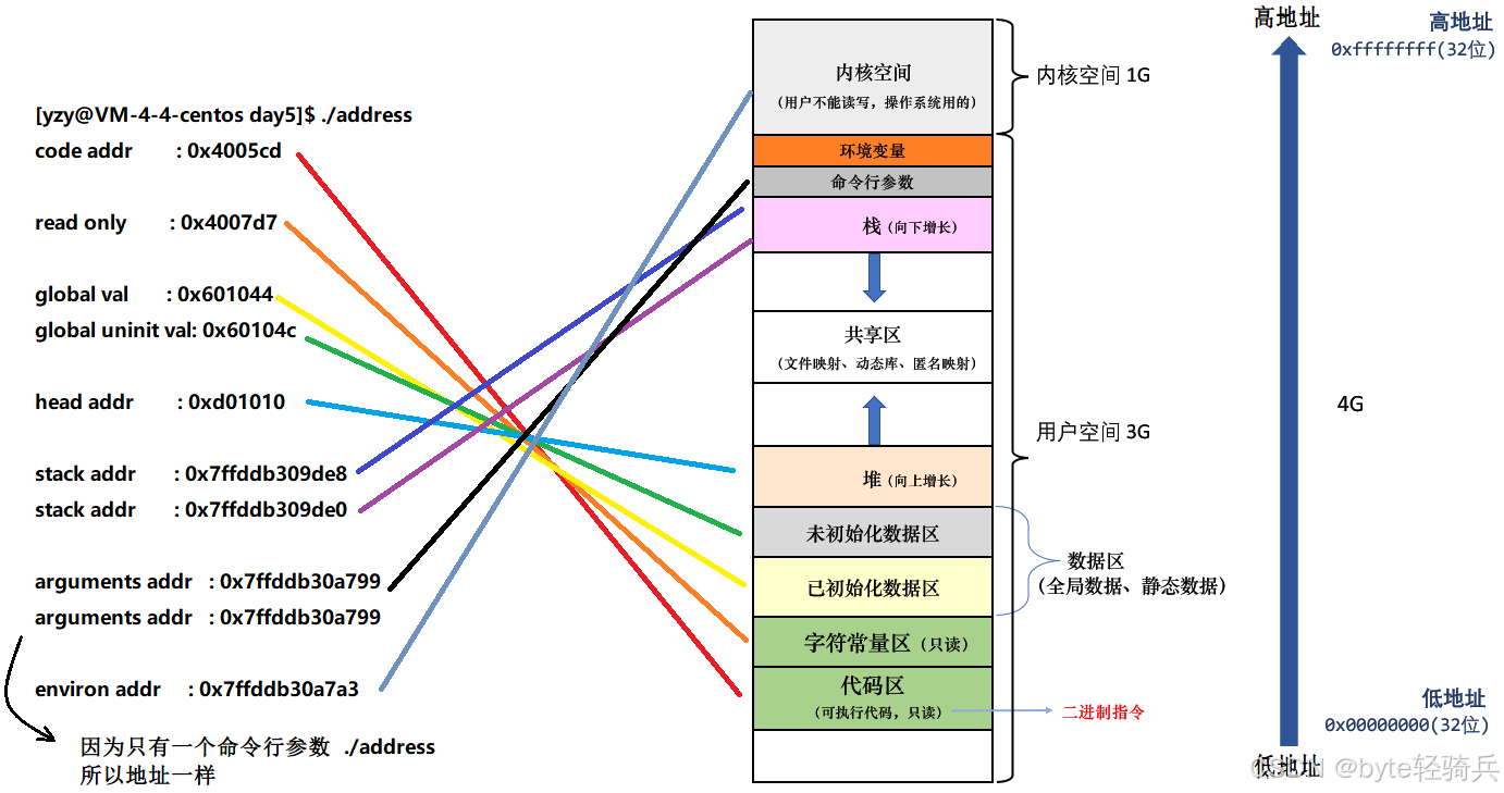 | 用户空间(0-3GB) | 每个进程独立,存放程序代码/数据/堆/栈