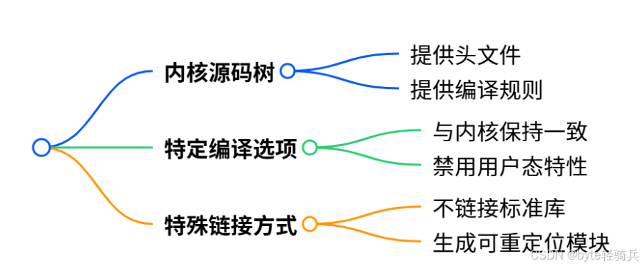 内核模块不是独立程序,而是要嵌入到内核中的 "插件",意味着: