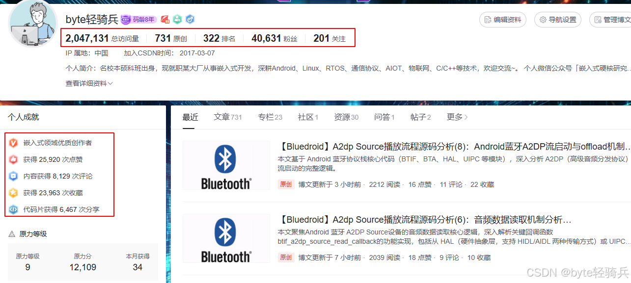 2023年8月30日的深夜,实验室里只有显示器的蓝光映在脸上,当我第23次按下Run按钮,Logcat终于显示出完整的服务UUID列表。那一刻,我知道这个困扰我一周的BLE服务发现问题终于解决了。而更让我没想到的是,这个深夜的调试成果,会成为我技术创作旅程的起点。就在那个瞬间,我点开了 CSDN 的编辑器 —— 有些技术迷宫,值得为后来者留下一把带体温的钥匙。 一年后的今天,后台显示的数字已经从最初的 0 变成了:40000 + 粉丝、2046447 次阅读、25000 + 点赞、8000 + 评论,以及 700 + 篇横跨 Android 源码解析、C/C++ 编程、蓝牙协议栈的原创文章。这些数字背后,是无数个与代码对话的深夜,是与素未谋面的开发者隔空击掌的瞬间,更是一个普通技术人在分享中完成的自我蜕变。