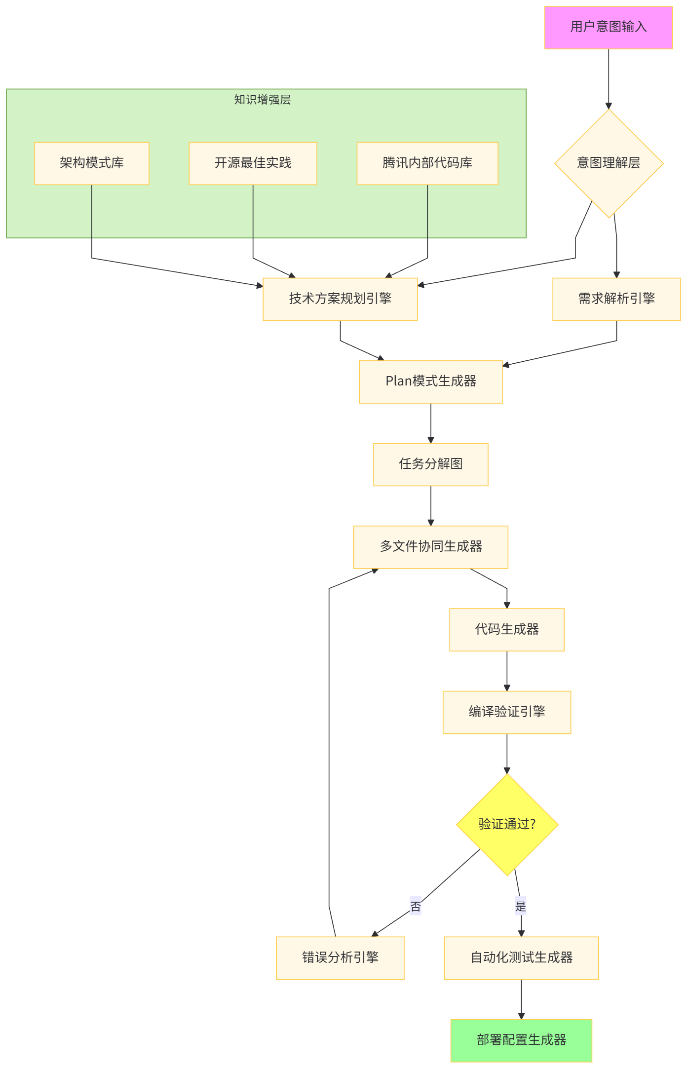 game.js前,已预先识别需要auth.js导出的用户身份接口,自动生成导入语句和类型定义,避免传统工具"单文件生成、人工联调"的割裂感。tsc --noEmit和单元测试,错误信息反馈至错误分析引擎,触发针对性修正,形成"生成-验证-学习"的强化学习循环。需求描述:创建一个支持微信登录、实时对战、历史复盘功能的五子棋PWA应用,要求离线可玩,UI采用国风设计。