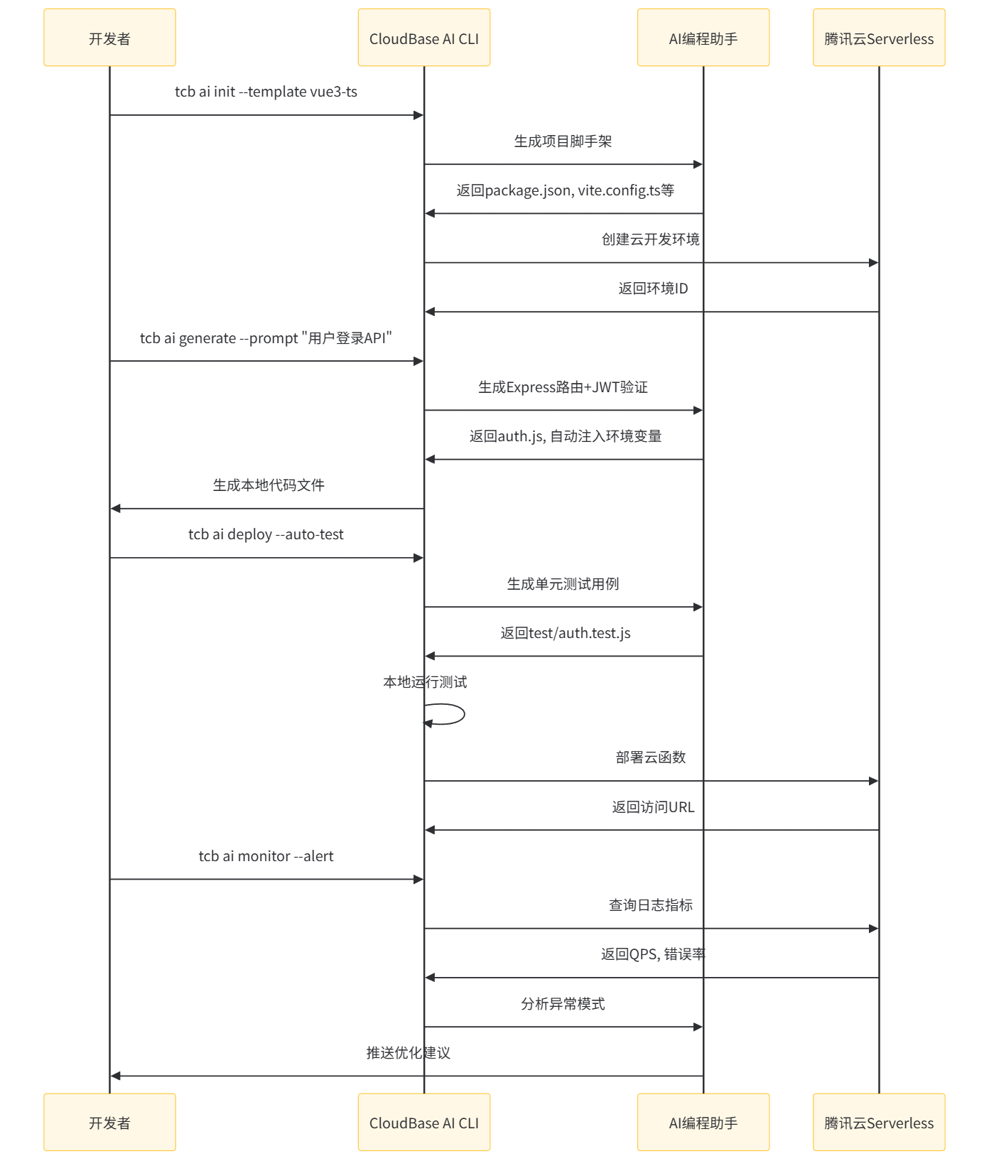 cloudbaserc.js中的Redis配置,生成对应的分布式锁实现;若未配置Redis,则降级为数据库乐观锁。paymentService和notificationService拆分为独立函数,降低单个函数包体积(从8MB降至2MB),冷启动时间减少60%。步骤3:一键部署与监控(命令行驱动)