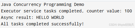 System.out.println("All tasks completed successfully!");