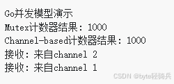 fmt.Printf("Channel-based计数器结果: %d\n", finalCount)