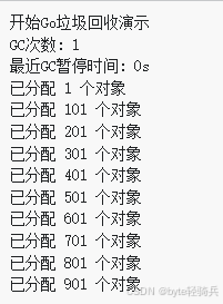 fmt.Println("开始Go垃圾回收演示")