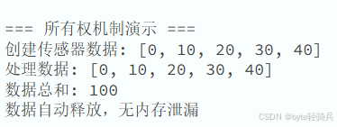 缓冲区buf采用栈分配(避免堆内存开销),其生命周期严格限定在process_sensor_data函数内,编译期即可确保内存不会泄漏。相比之下,C语言中若忘记释放堆内存(或释放时机错误),就会引发泄漏问题。