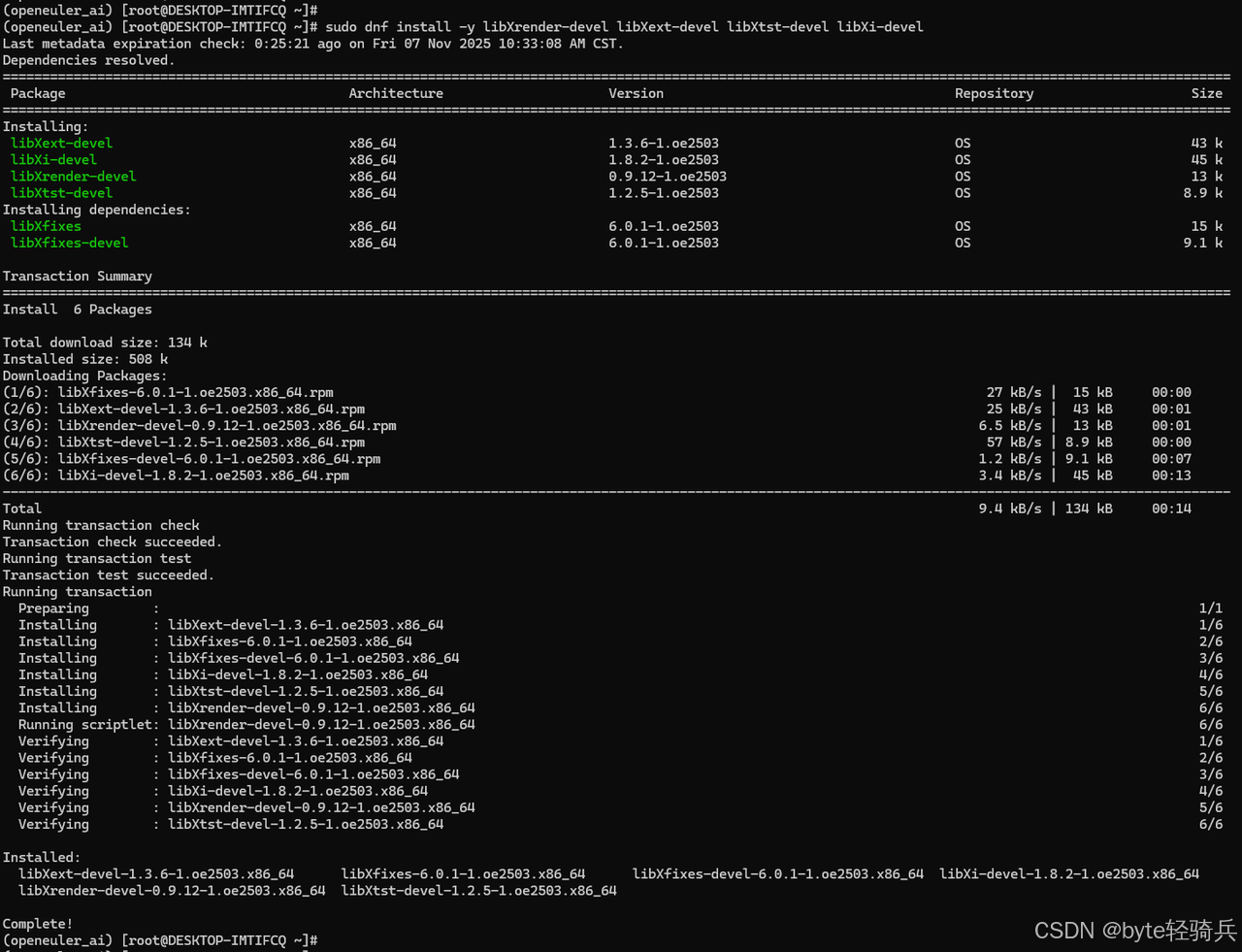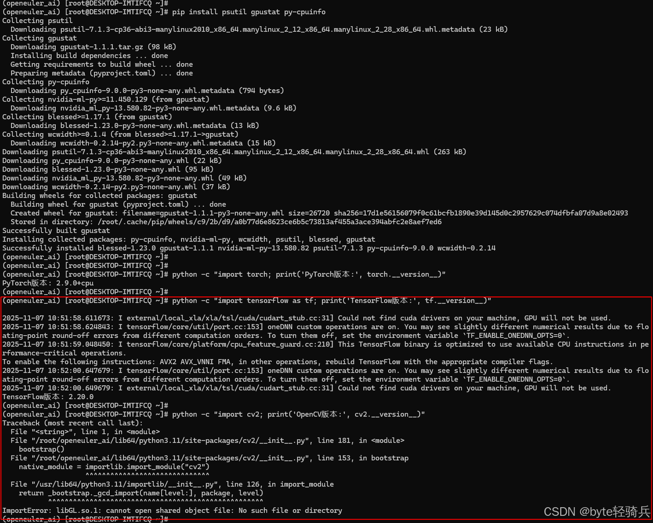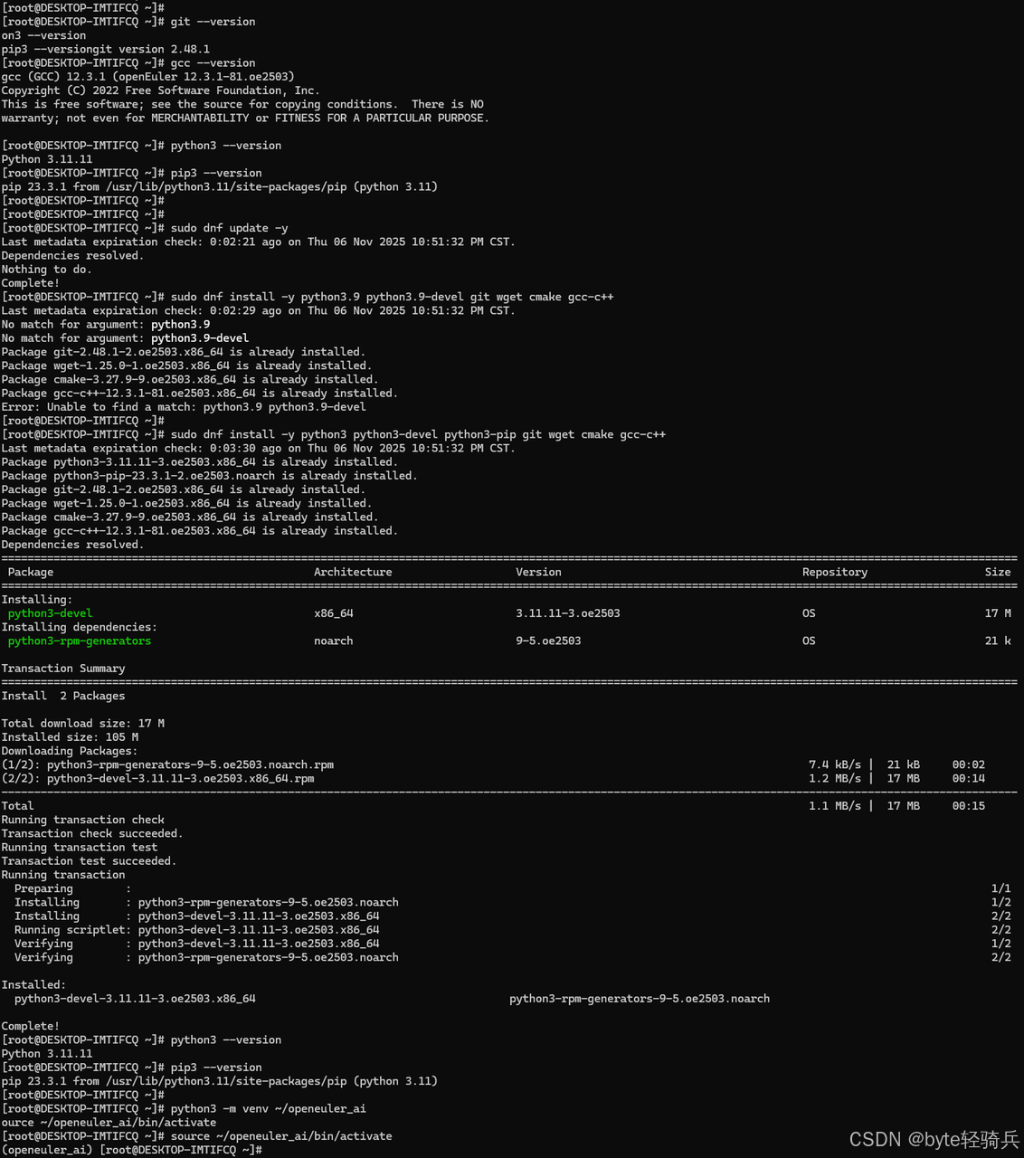 参照文档https://byteqqb.blog.csdn.net/article/details/154481488?spm=1001.2014.3001.5502完成openEuler基础环境部署后,进行AI专项环境配置: