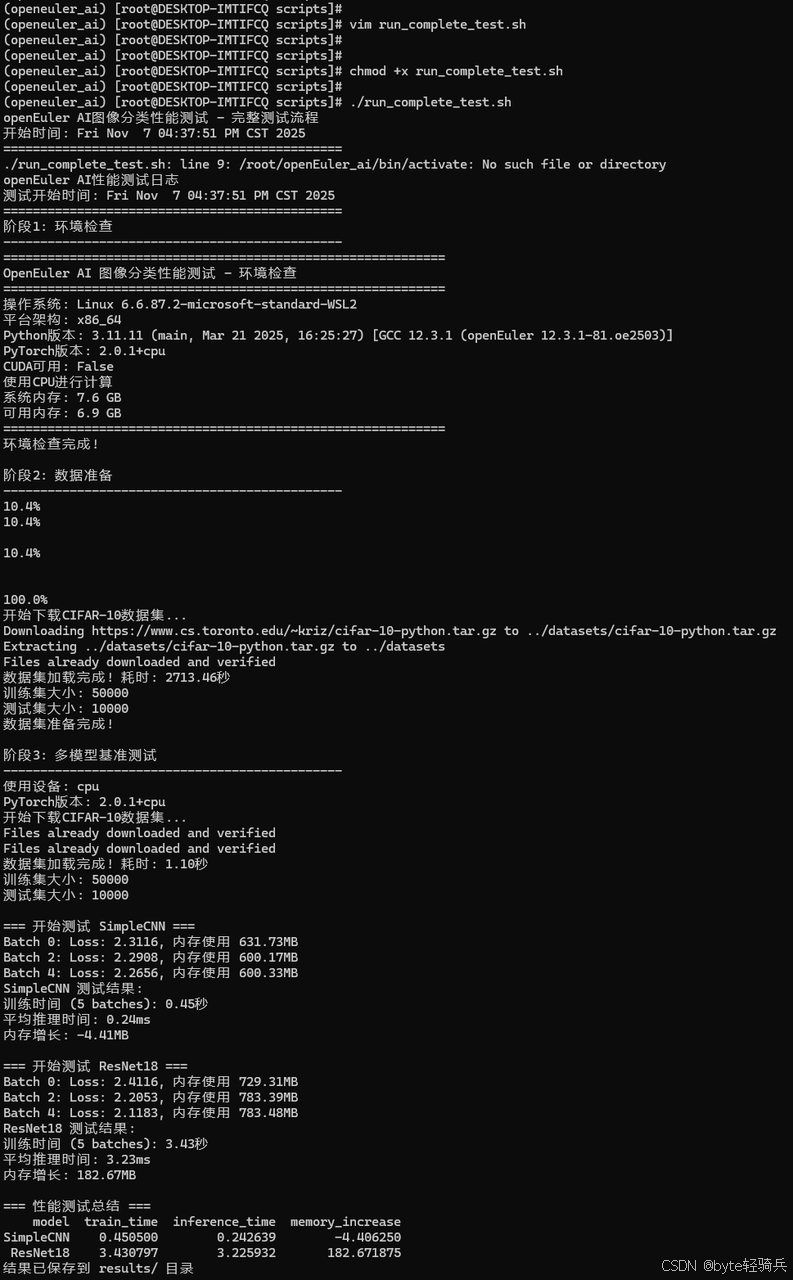 echo "openEuler AI图像分类性能测试 - 完整测试流程"