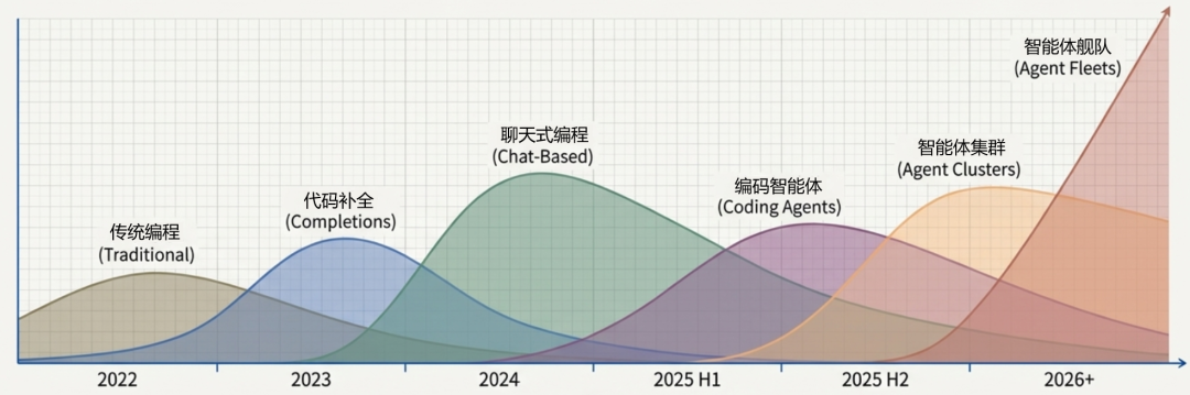 现在,结合全知全能的大模型像打开了盒子,AI 的介入让软件工程快速进入了“意图驱动”的时代。 我们正处在软件工程史上最剧烈的变革期——从“人写代码给机器看” 转向“人表达意图给AI听,AI实现给机器看”。