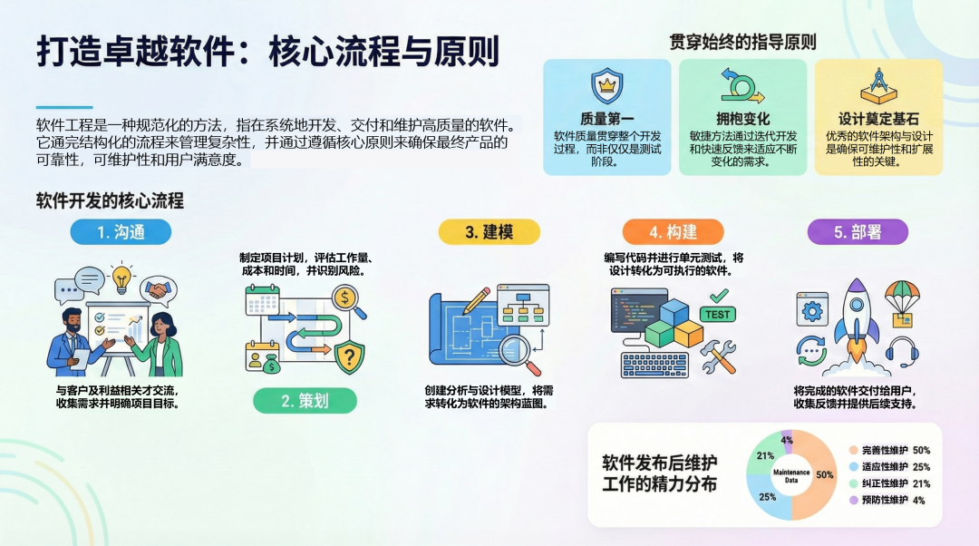 软件工程(Software Engineering)的本质是在给定资源(时间、人才、预算)的约束下,通过系统化的方法构建和维护高质量软件的学科。