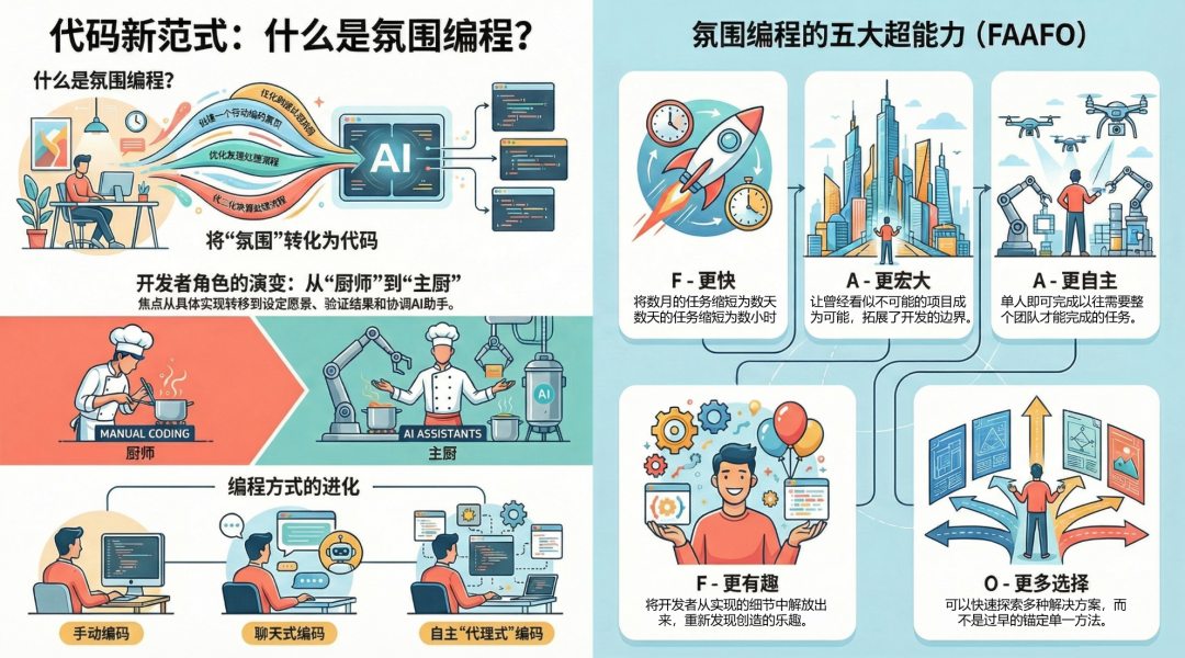 软件工程并没有消失,它只是变得更加纯粹。 我们正在步入与AI合作的时代,需要我们细心引导,建立共知共识,协同步入由人定义意图、由 AI 完美执行的“氛围工程”新纪元。