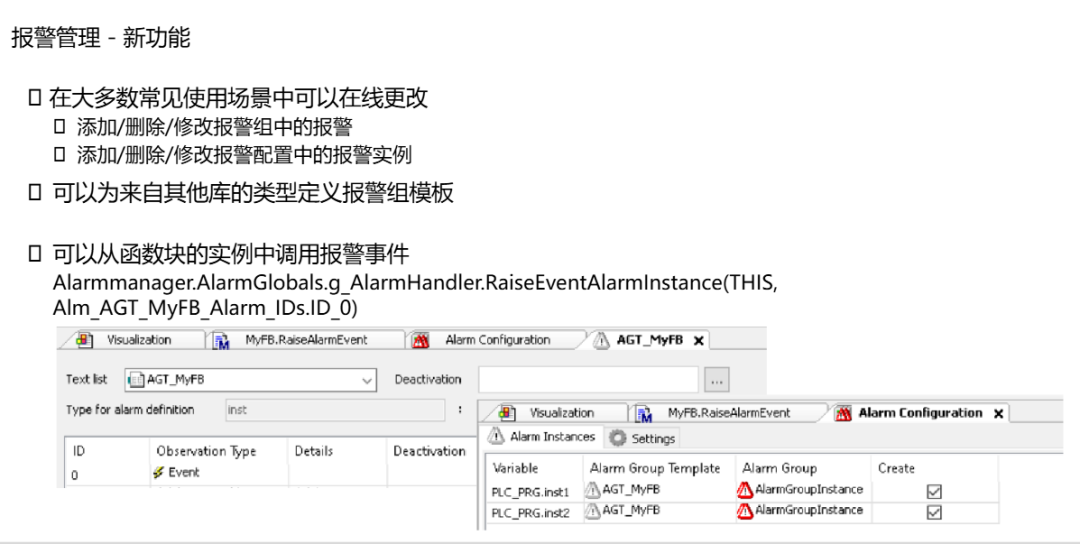 4.报警可在线修改且可以使用函数功能块调用