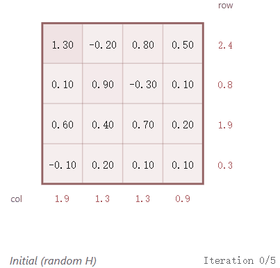 就是这样。交替进行行和列的归一化。二十次迭代就足够了。