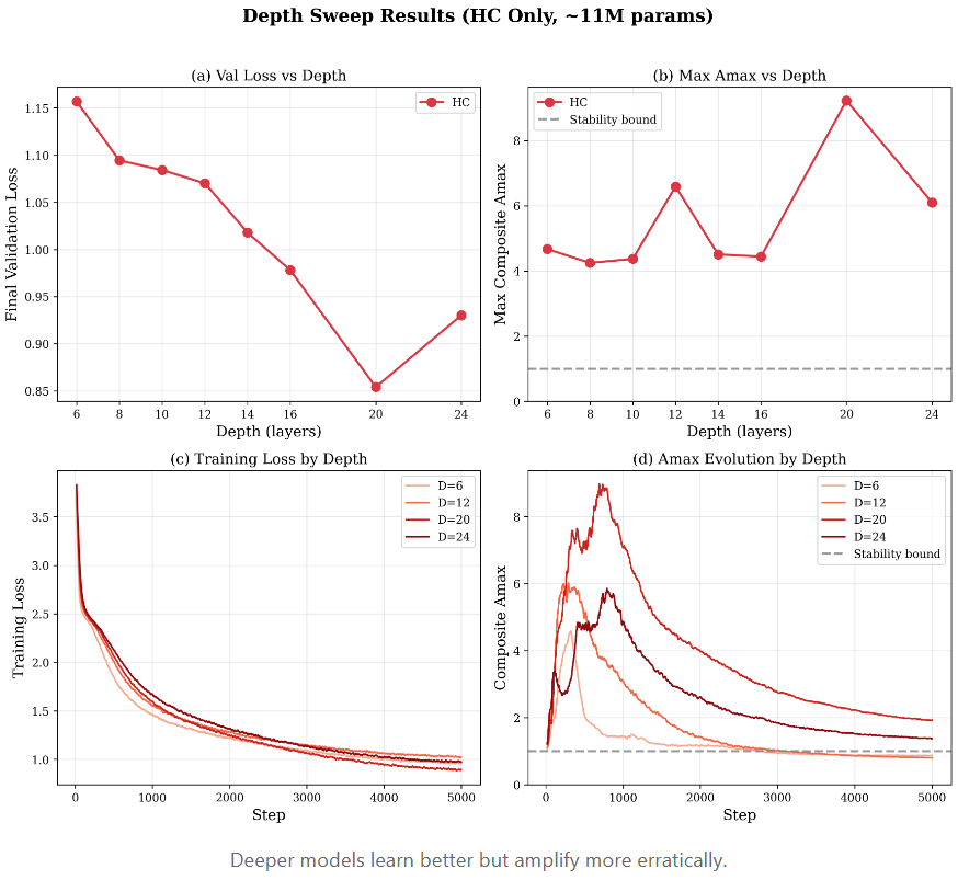 你没有看错:三千倍的放大。在 27B 参数下,不受约束的 HC 不仅仅是漂移,而是爆炸了。这里的 10M 复现中达到的 9.2 倍正是这种指数级故障的早期预警。