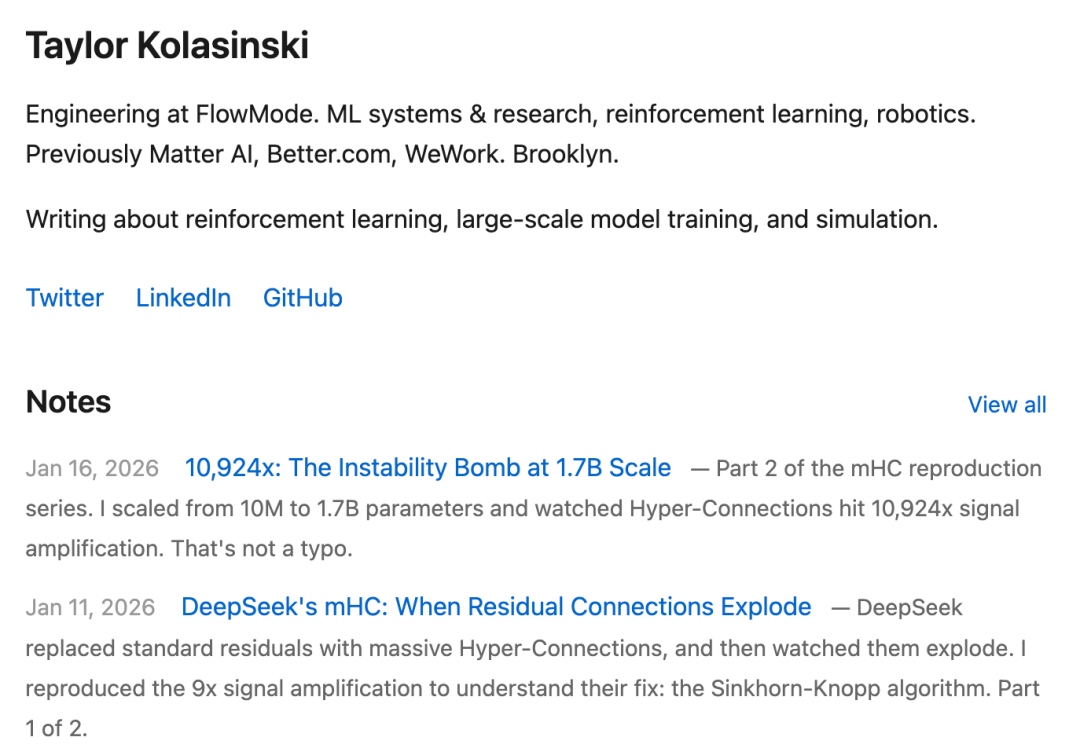 目前,Kolasinski 正通过一个 mHC 复现系列博客介绍其复现成果,相关博客已经发布了 2 篇。这里我们进行了整理,以飨读者。