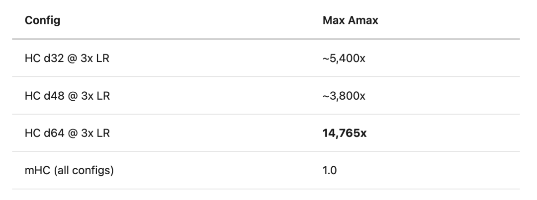 mHC 不仅仅是降低了不稳定性,而是彻底消除了这种故障模式。